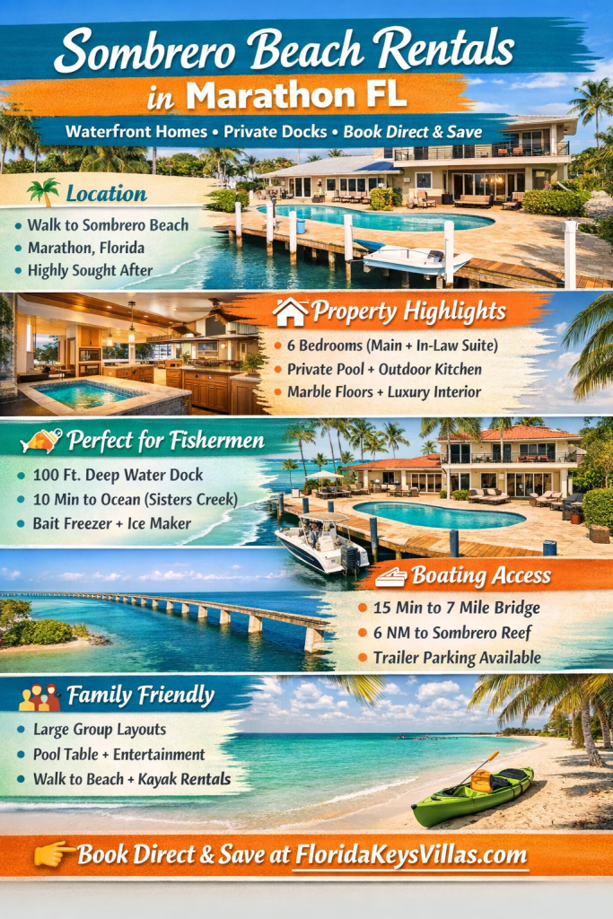 You can find Sombrero Beach rentals by booking direct at FloridaKeysVillas.com, where waterfront homes offer private docks, pools, and easy beach access.
